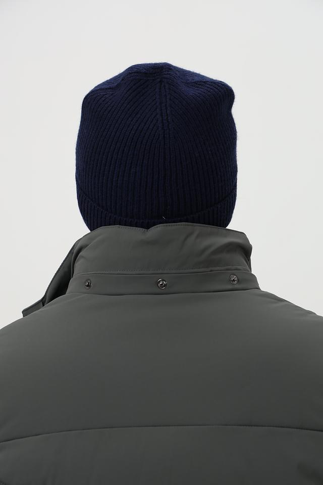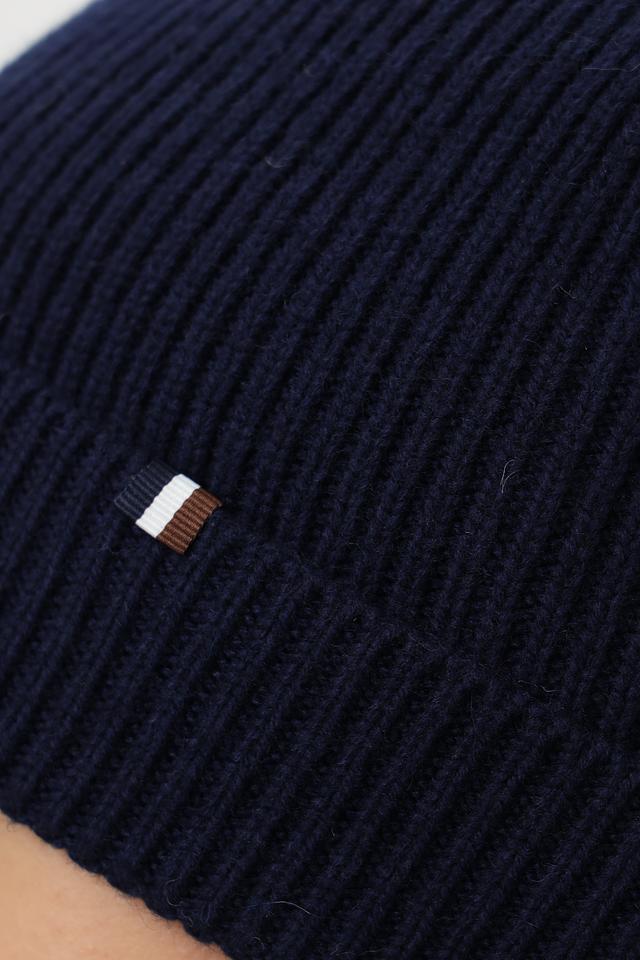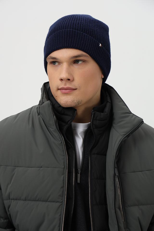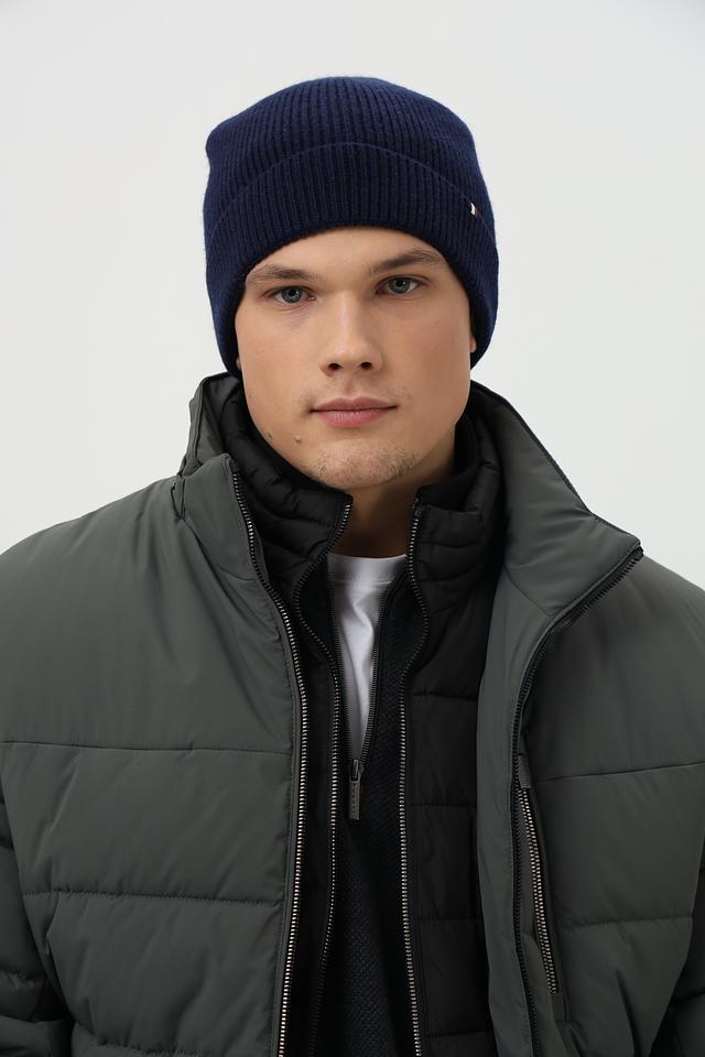 Шапка имеет классический дизайн и насыщенный синий цвет, который легко сочетается с различными видами верхней одежды. Небольшой логотип бренда добавляет шапке элегантности и узнаваемости.