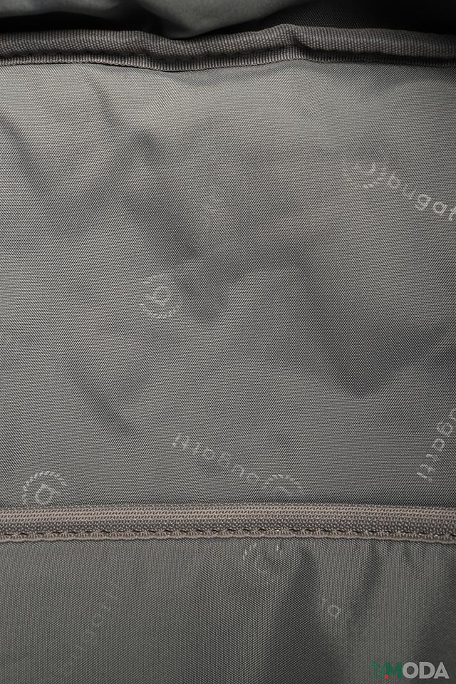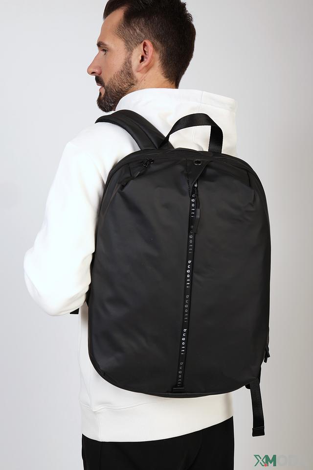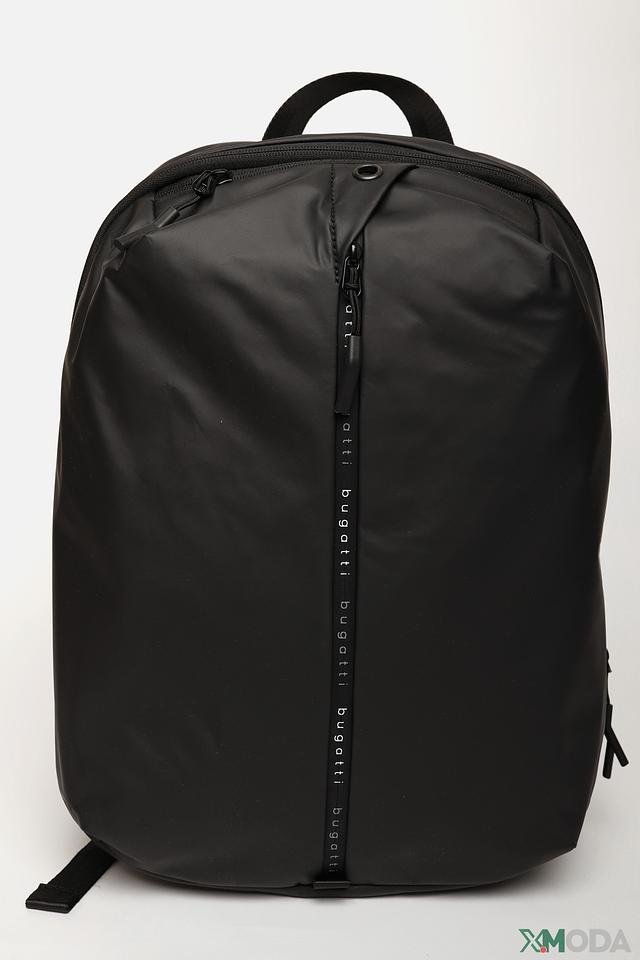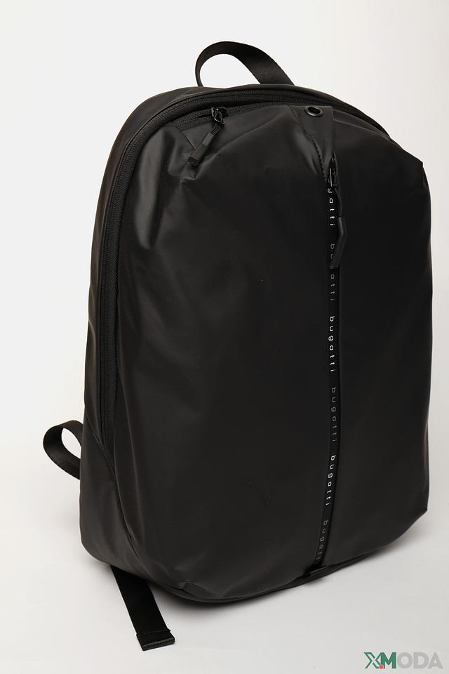 Рюкзак имеет одно основное отделение, которое закрывается на молнию. На передней панели расположен дополнительный карман на молнии для быстрого доступа к необходимым вещам. Лямки регулируются по длине, что позволяет настроить рюкзак под свой комфорт. На лямках присутствует логотип бренда Bugatti.