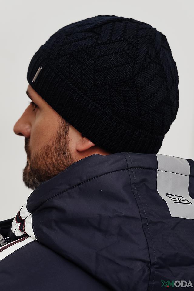 Шапка имеет плотную вязку с выразитым узором «косы», придающим ей текстурный вид. Небольшой металлический логотип бренда на лицевой стороне добавляет шапке элегантности и узнаваемости.