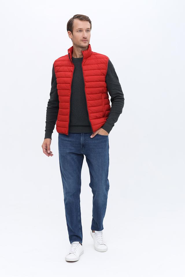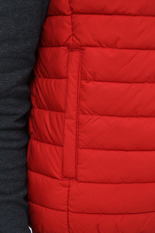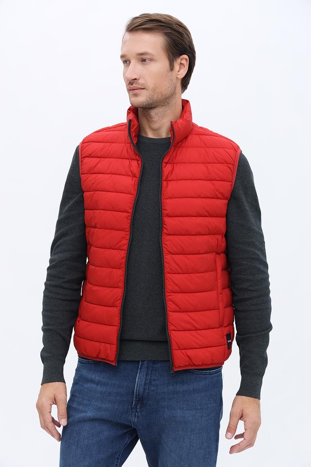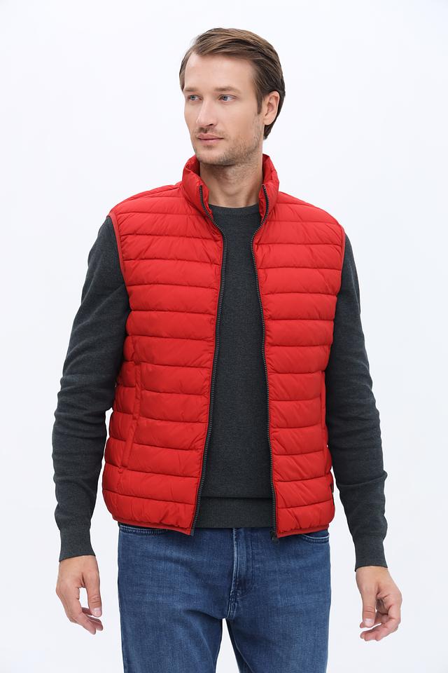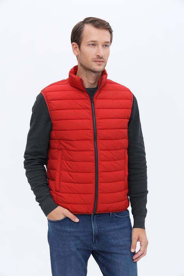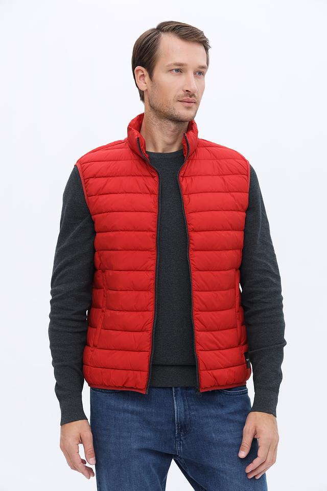 Мужской жилет Calamar выполнен в ярком красном цвете и имеет стеганую текстуру. Это отличный выбор для создания многослойных образов в прохладную погоду.