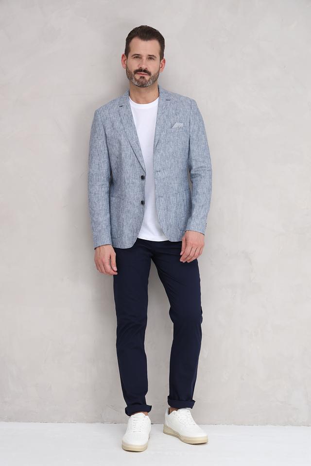 Стильный мужской пиджак Calamar голубого цвета выполнен из льна с добавлением полиэстера. Классический крой и удобная посадка делают его идеальным выбором для создания элегантного образа. Состав: лен 55%, полиэстер 45%