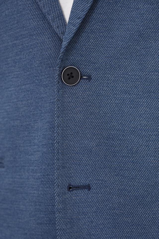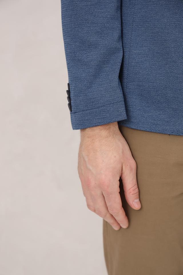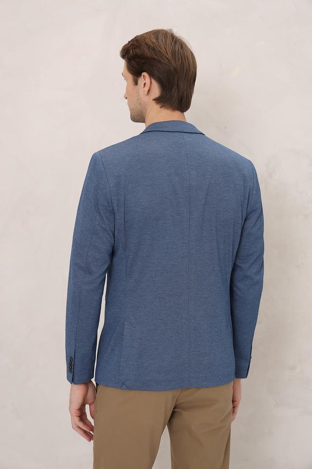 Текстурированная ткань придает пиджаку особый шарм и делает его более интересным визуально. Застежка на две пуговицы обеспечивает надежную фиксацию. Пиджак имеет стандартные лацканы.