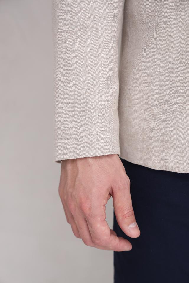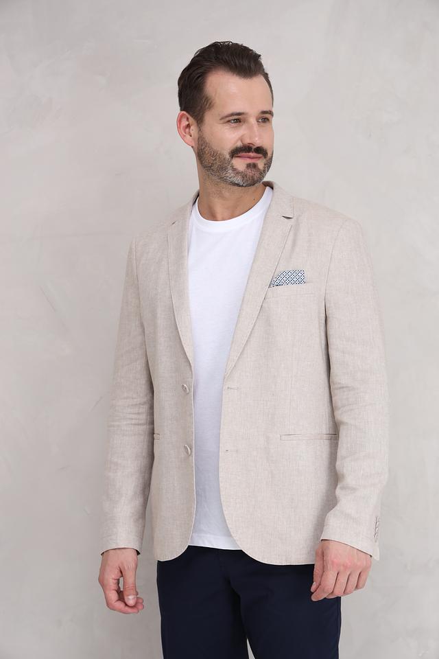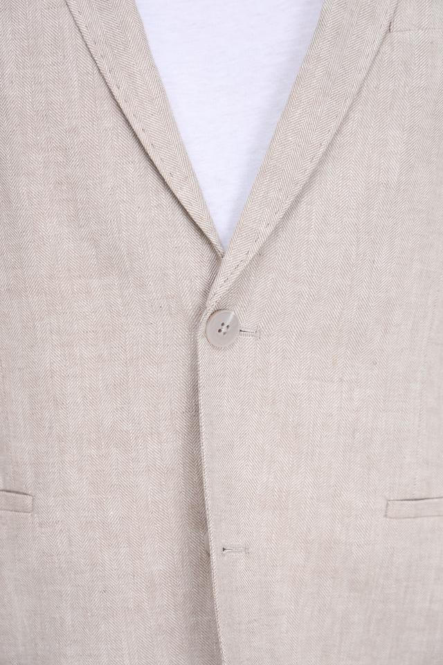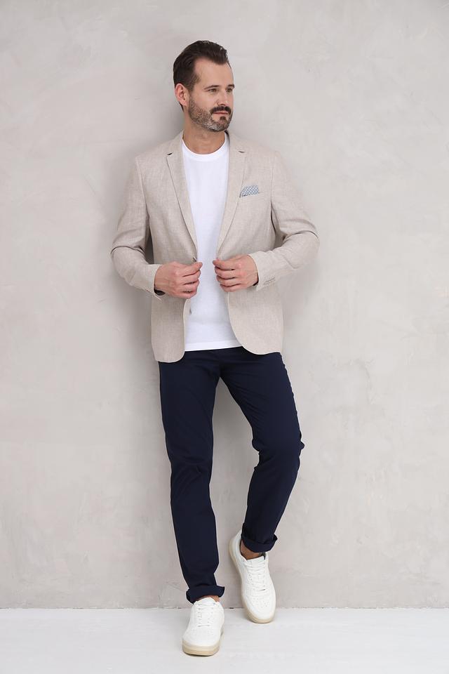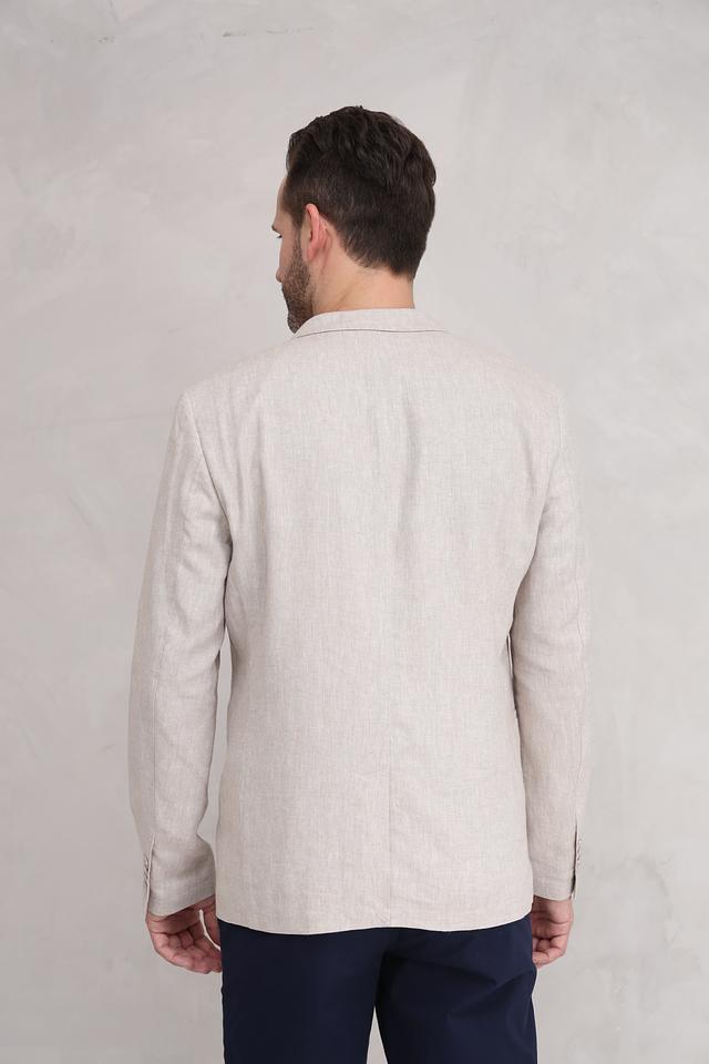 Пиджак имеет классический крой, который подчеркивает фигуру и обеспечивает комфортную посадку. Материал – сочетание льна (55%) и вискозы (45%) – приятен к телу, хорошо дышит и обеспечивает легкость в носке.
