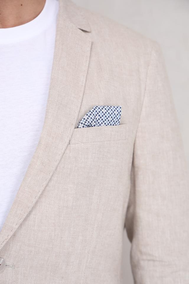 Детали, такие как лацканы, карманы с клапанами и аккуратные швы, придают пиджаку элегантный вид. На левом лацкане предусмотрен карман для нагрудного платка. Этот пиджак станет незаменимой вещью в вашем гардеробе, позволяя создавать стильные и комфортные образы в различных ситуациях.