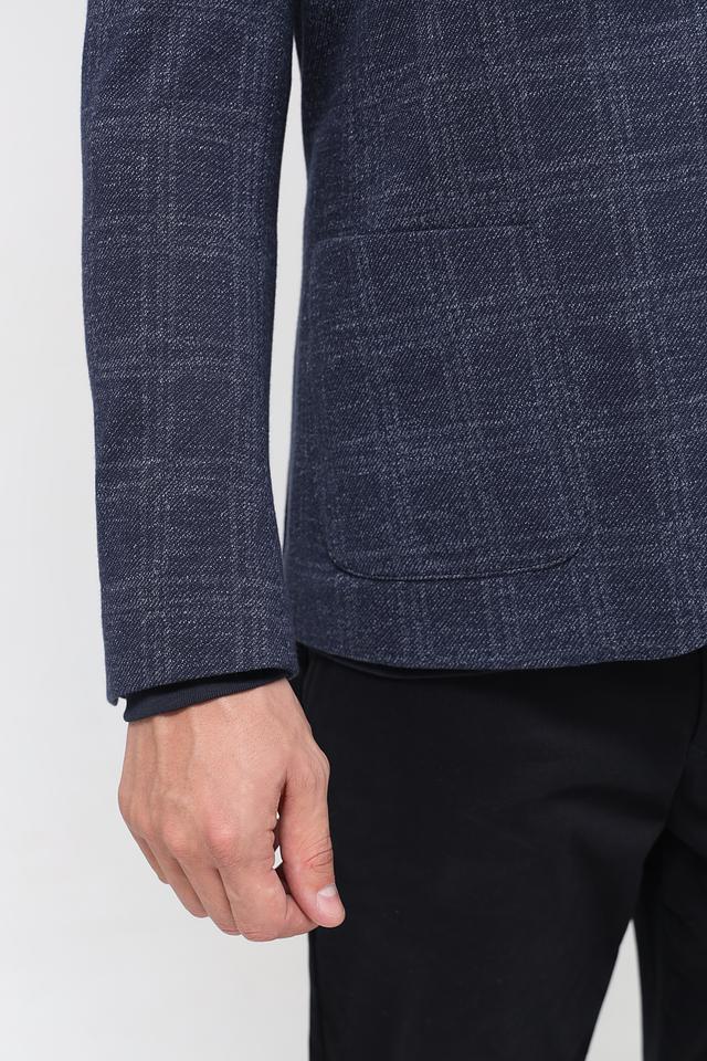Этот стильный мужской пиджак от Calamar выполнен в синем цвете и украшен классическим клетчатым узором. Пиджак имеет приталенный крой, который подчеркивает фигуру, и застегивается на две пуговицы.