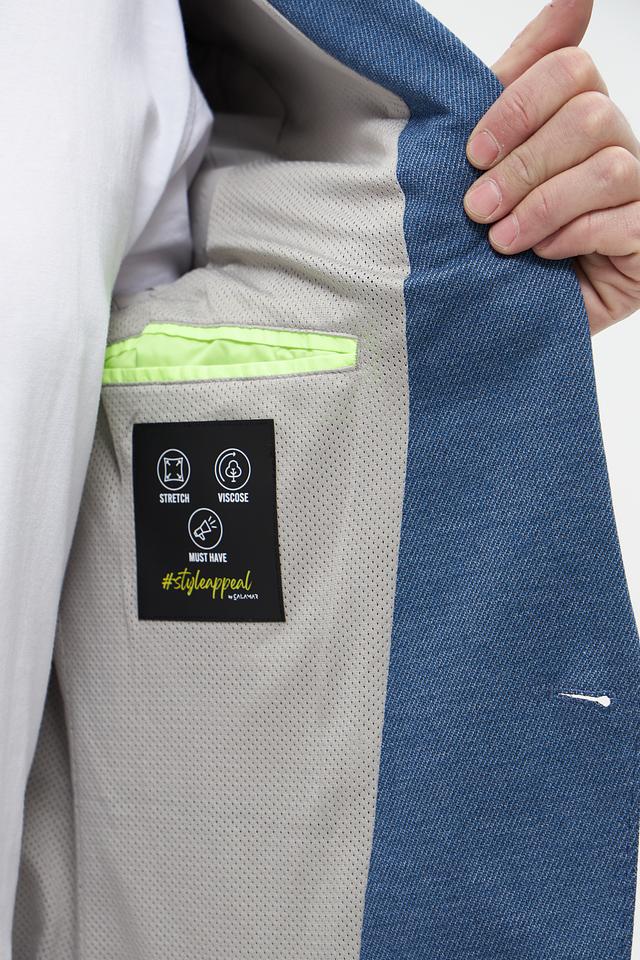 Мужской пиджак Calamar голубого цвета – это стильное и современное решение для создания элегантного образа. Изготовлен из сочетания полиэстера, вискозы и эластана, обеспечивающего комфорт и удобство в носке. Состав: полиэстер 65%, вискоза 33%, эластан 2%