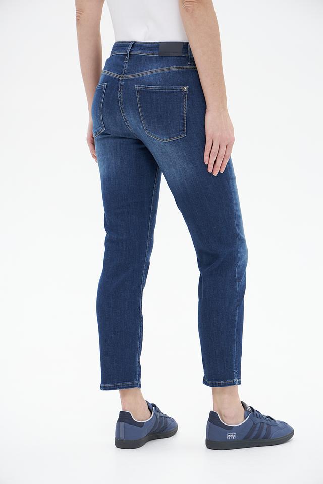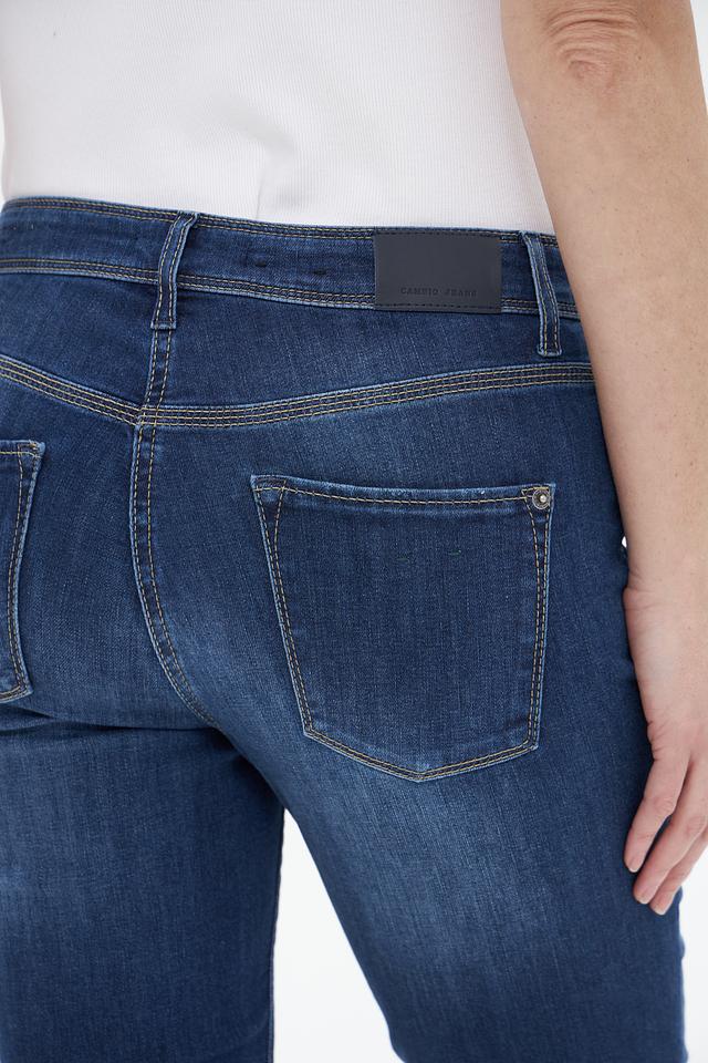 Женские джинсы Cambio классического синего цвета с эффектом утяжки. Модель выполнена из хлопка с добавлением эластана для комфортной посадки и сохранения формы. Идеальный выбор для повседневного образа. Состав: хлопок 92%, эластомультиэстер 6%, эластан 2%