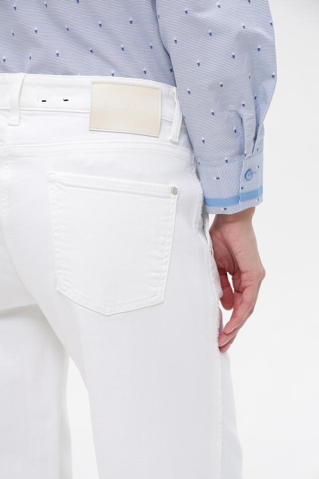 Белые джинсы клеш от Cambio из хлопка с добавлением эластана. Модель имеет классическую посадку, застежку на молнию и пуговицу, а также функциональные карманы. Состав: 92% хлопок, 6% эластомультиэстер, 2% эластан. Состав: хлопок 92%, эластомультиэстер 6%, эластан 2%