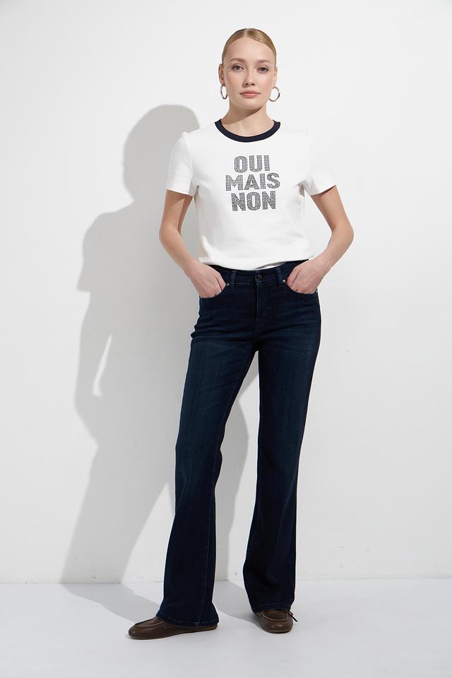 Особенностью этих джинсов является яркая и красочная вышивка, украшающая швы. Вышивка выполнена в разнообразных цветах, что придает джинсам уникальный и запоминающийся вид. Высокая посадка подчеркивает талию и создает элегантный силуэт.