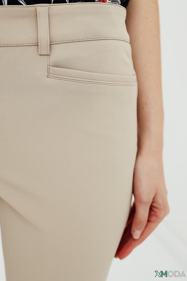 Брюки имеют прямой крой, который подчеркивает фигуру, не сковывая движений. Высокая посадка визуально удлиняет ноги и делает силуэт более стройным. Застежка на молнию и пуговицу обеспечивает надежную фиксацию. Модель дополнена функциональными карманами.