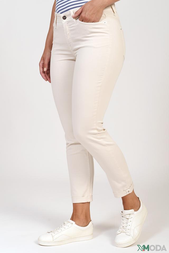 Брюки имеют классический крой и стандартную посадку по талии. Их бежевый цвет легко сочетается с различными элементами одежды, позволяя создавать разнообразные образы. Манжеты на брючинах добавляют непринужденности и стиля.