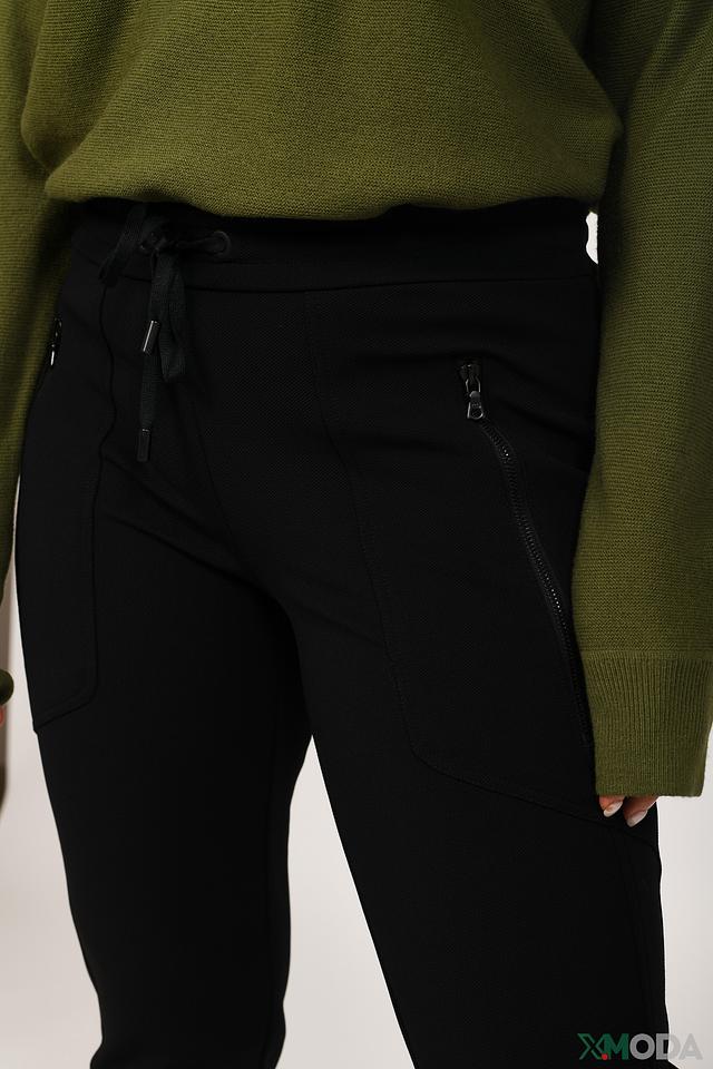Брюки имеют удобный эластичный пояс с регулирующим шнурком, обеспечивающим комфортную посадку. Наличие боковых карманов и задних карманов на молнии добавляет функциональности.