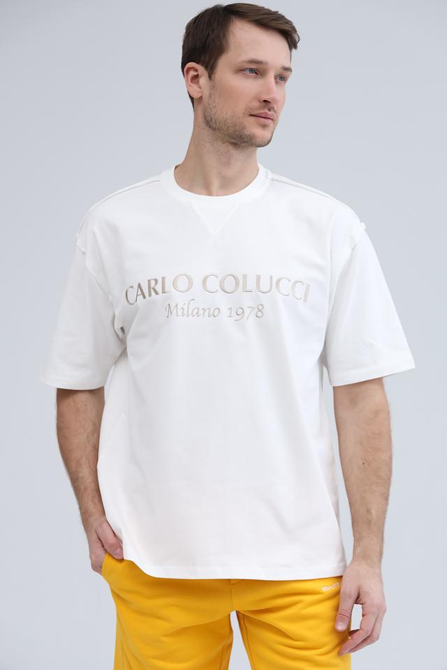 На груди футболки размещена надпись "CARLO COLUCCI Milano 1978", выполненная в золотистом цвете, что придает ей особый стиль и узнаваемость.