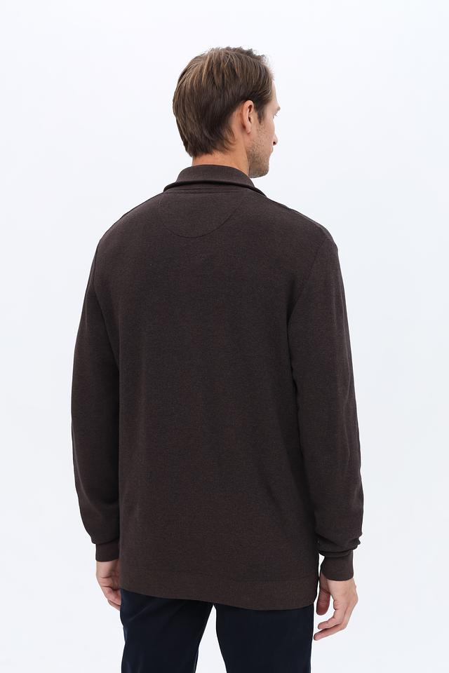 Мужской пуловер Casa Moda коричневого цвета с воротником и короткой молнией. Изготовлен из мягкого хлопка с добавлением полиамида для износостойкости. Стильный и комфортный выбор для повседневной носки. Состав: хлопок 90%, полиамид 10%