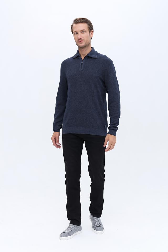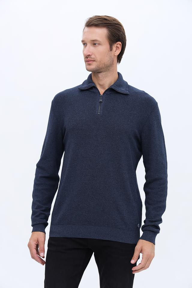 Мужской джемпер Casa Moda синего цвета с воротником-стойкой и короткой молнией. Изготовлен из мягкого хлопка с добавлением полиамида для износостойкости и сохранения формы. Состав: хлопок 90%, полиамид 10%