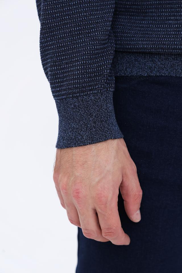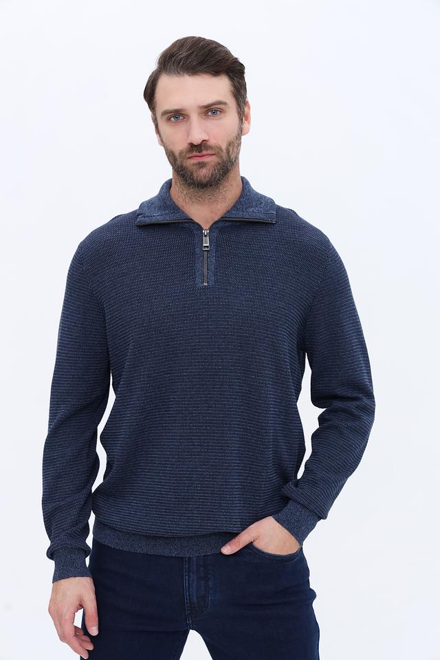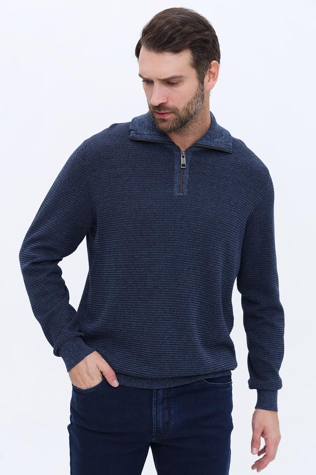 Мужской джемпер Casa Moda синего цвета с короткой молнией на воротнике. Изготовлен из 100% хлопка, отличается текстурной вязкой и удобным кроем. Состав: хлопок 100%