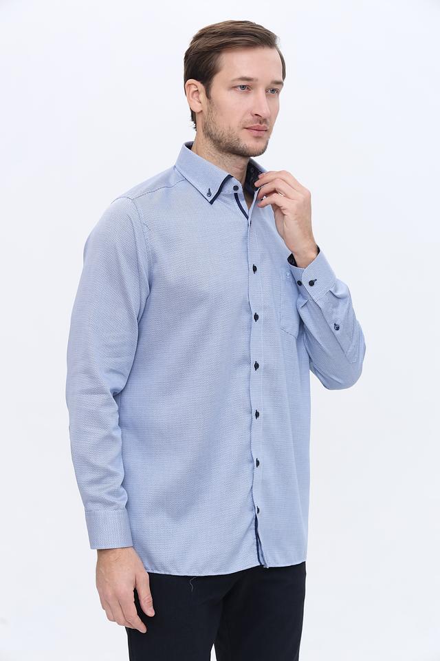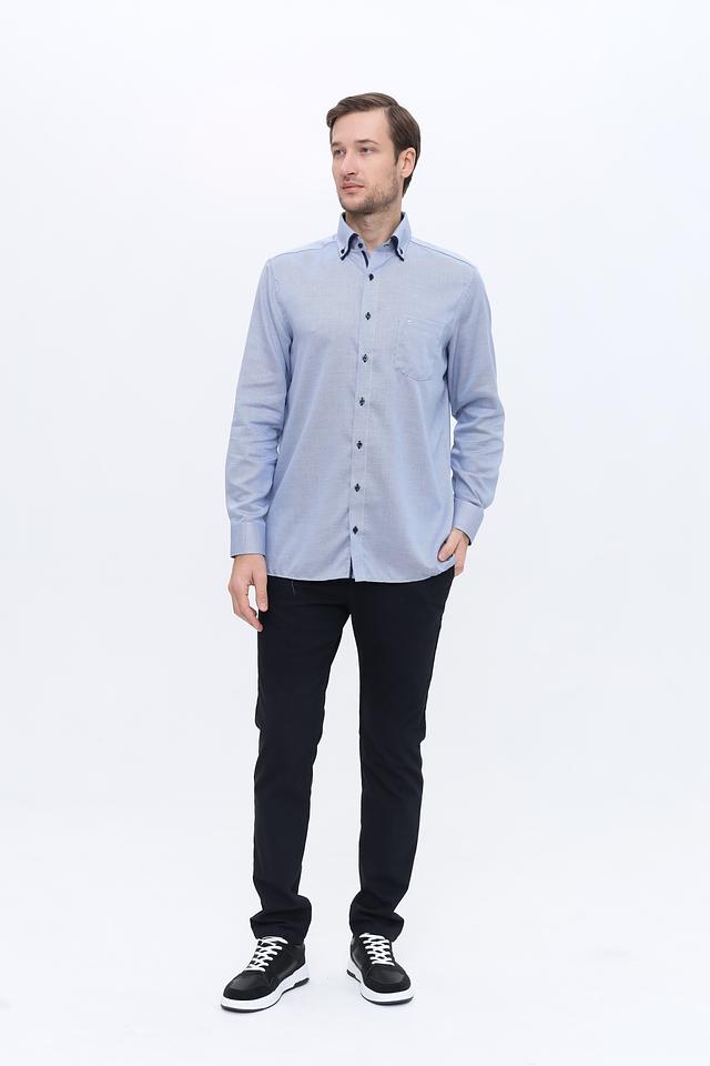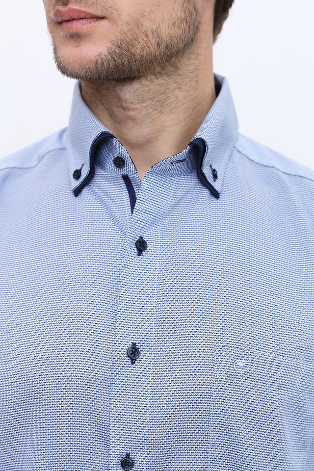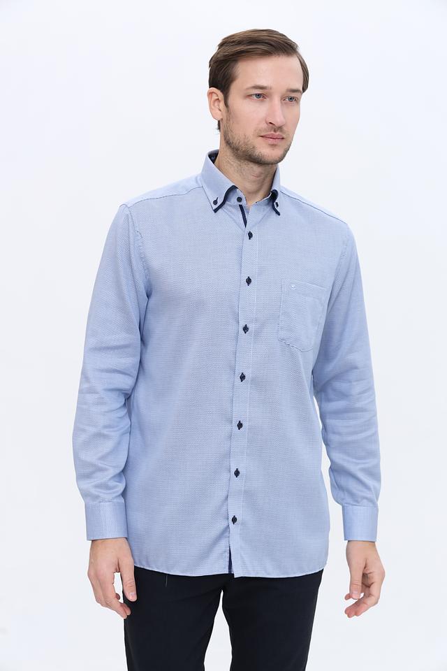 Голубая рубашка Casa Moda с длинным рукавом и классическим воротником. Изготовлена из 100% хлопка, имеет приталенный крой и стильный мелкоузорчатый принт. Идеальный выбор для создания элегантного образа. Состав: хлопок 100%