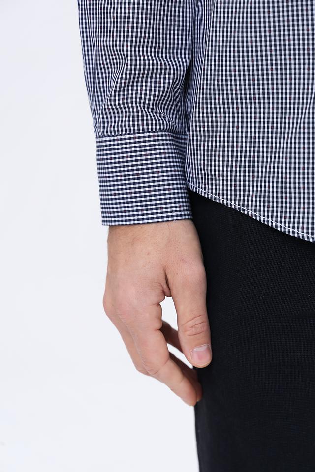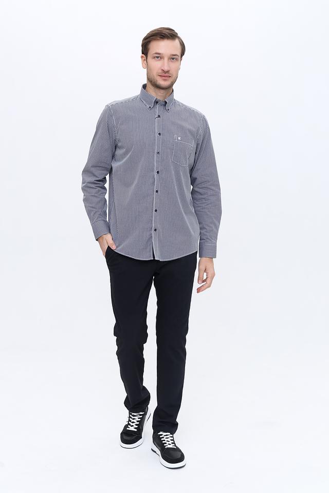 Рубашка имеет классический крой с длинными рукавами и притачным силуэтом. Воротник рубашки выполнен в стиле button-down, что добавляет ей аккуратности и строгости. Застежка на пуговицах обеспечивает удобство и надежность.