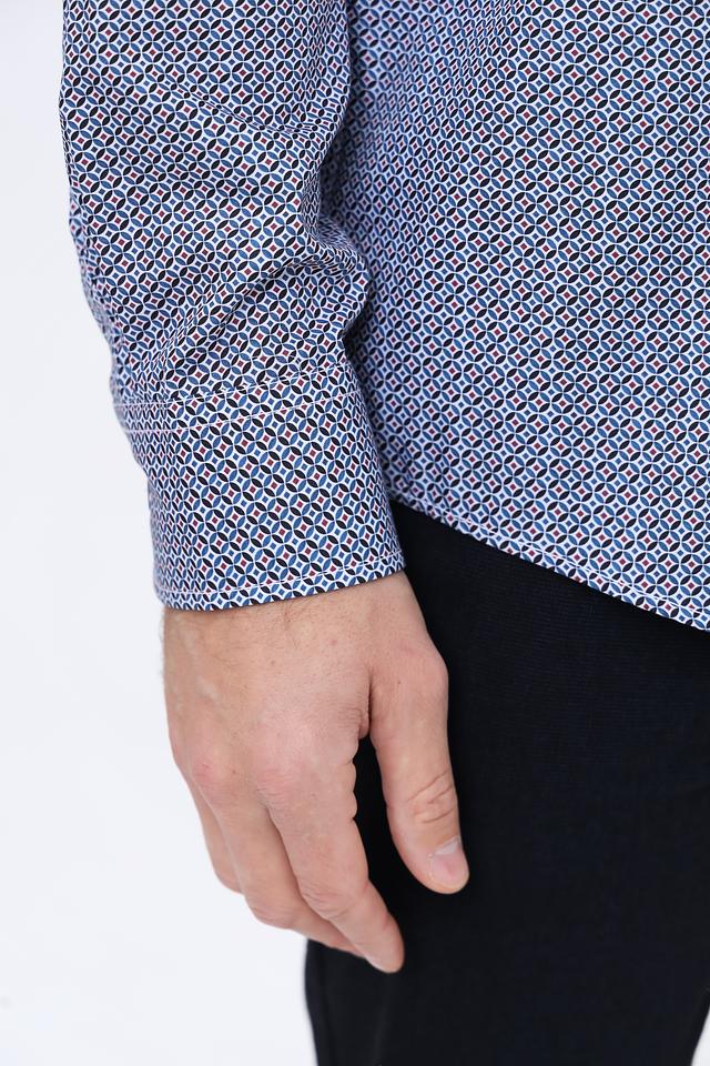Эта рубашка от Casa Moda станет прекрасным дополнением к вашему гардеробу. Выполнена в голубой цветовой гамме и украшена стильным геометрическим принтом, который придает ей индивидуальность.