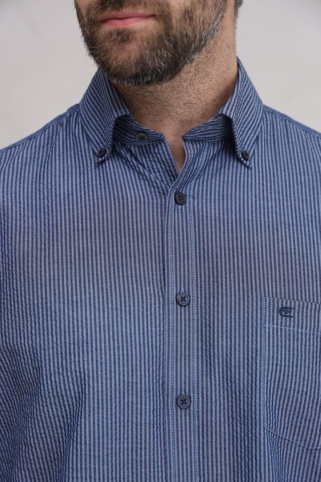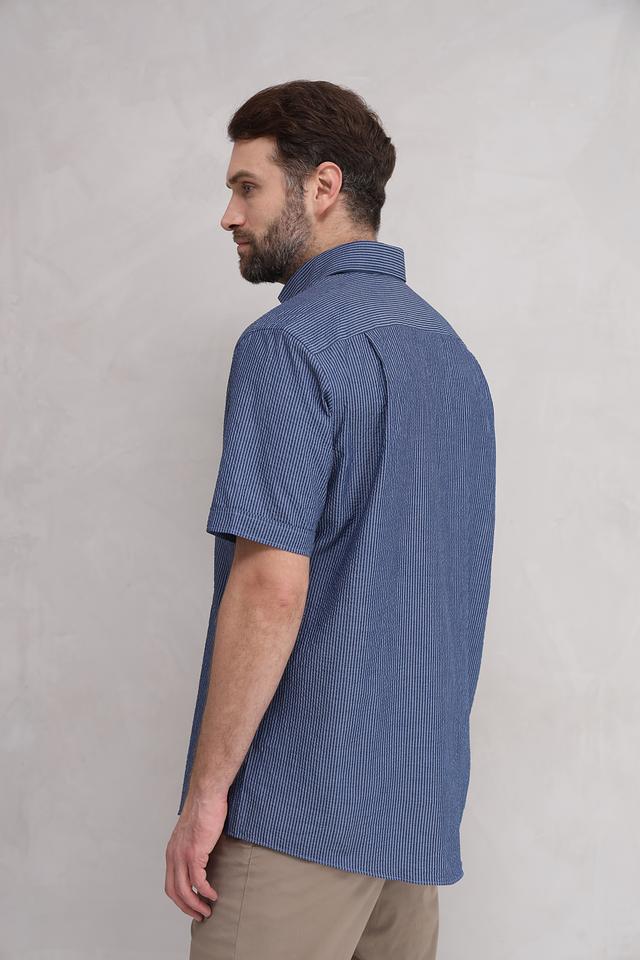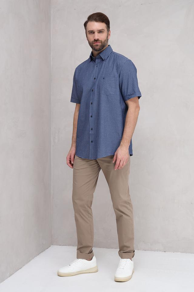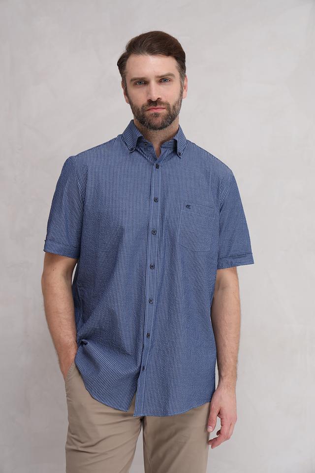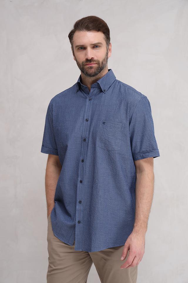 Мужская рубашка Casa Moda синего цвета с коротким рукавом и вертикальной полоской. Изготовлена из 100% хлопка, обеспечивающего комфорт и воздухопроницаемость. Отличный выбор для повседневного образа. Состав: хлопок 100%