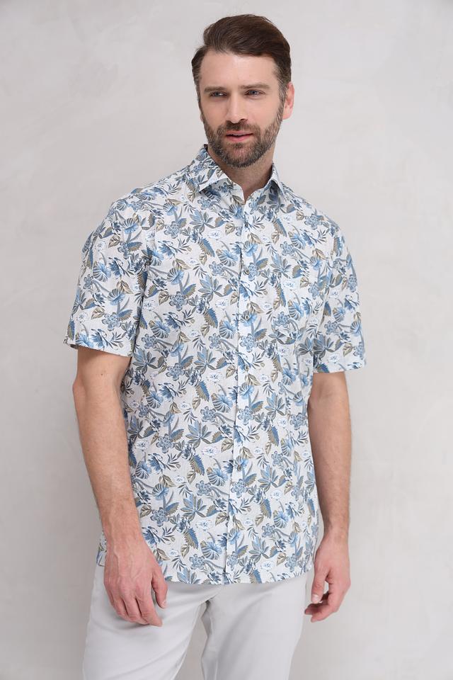Мужская рубашка Casa Moda голубого цвета с ярким цветочным принтом. Изготовлена из хлопка с добавлением эластана для комфорта и лучшей посадки. Состав: хлопок 97%, эластан 3%