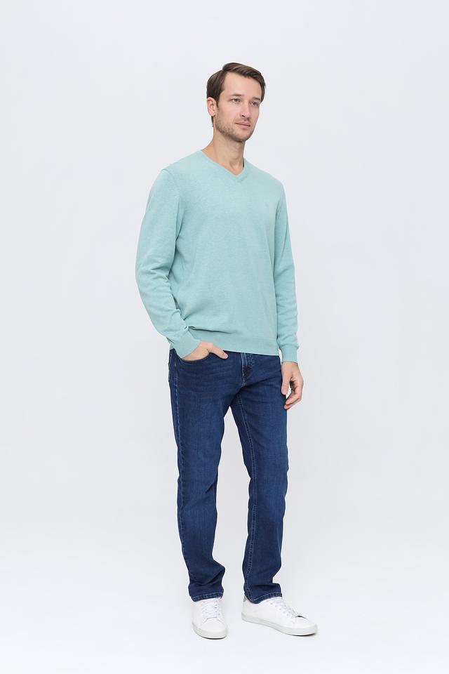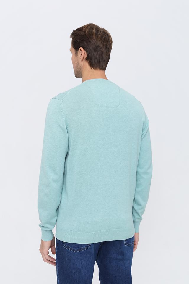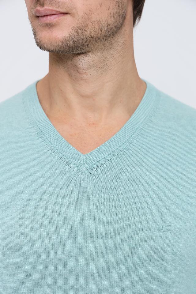Мужской джемпер от Casa Moda выполнен в нежном мятном оттенке. Модель имеет классический крой с V-образным вырезом, который визуально удлиняет шею и делает образ более элегантным.