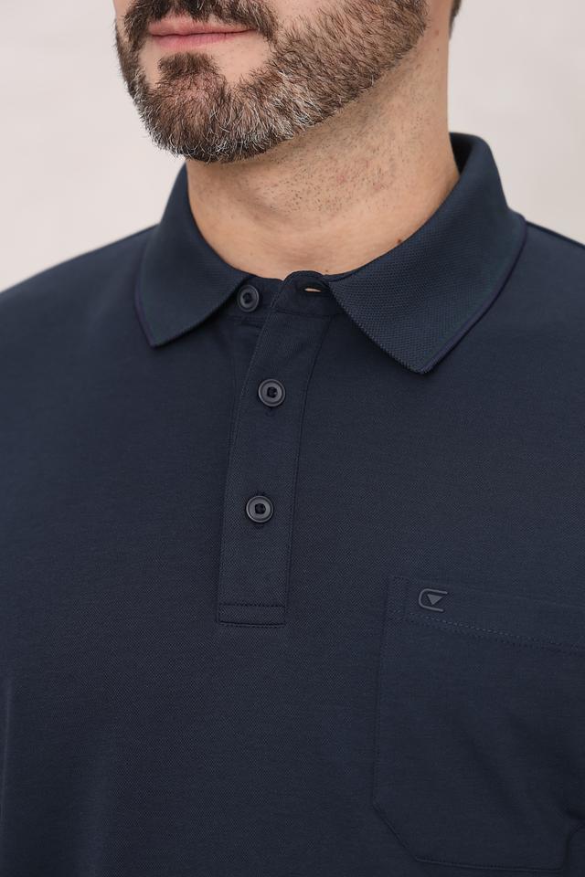 Это мужское поло от бренда Casa Moda выполнено в классическом стиле с длинным рукавом. Основной цвет – темно-синий, глубокий и насыщенный.