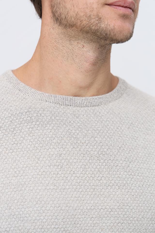Джемпер имеет классический крой с круглым вырезом горловины и длинными рукавами. Текстурная вязка придает ему интересный вид и делает его более универсальным. Он прекрасно сочетается с джинсами, брюками чинос и другими элементами повседневного стиля.