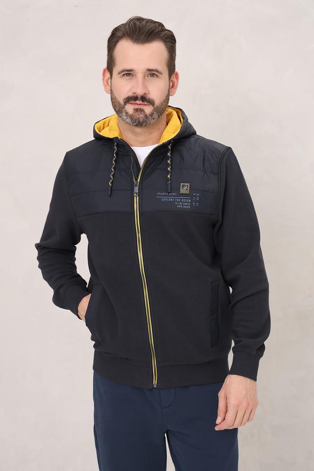 Мужской кардиган от Casa Moda – это практичная и современная одежда для создания комфортных образов. Модель выполнена в чёрном цвете с акцентным жёлтым капюшоном, что придает ей оригинальность.