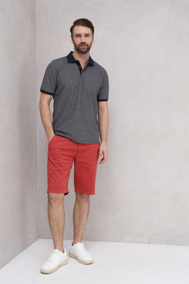 Мужское поло Casa Moda темно-синего цвета с оригинальным геометрическим рисунком и контрастным воротником и манжетами. Изготовлено из сочетания хлопка и полиэстера, обеспечивающего комфорт и практичность. Состав: полиэстер 50%, хлопок 50%