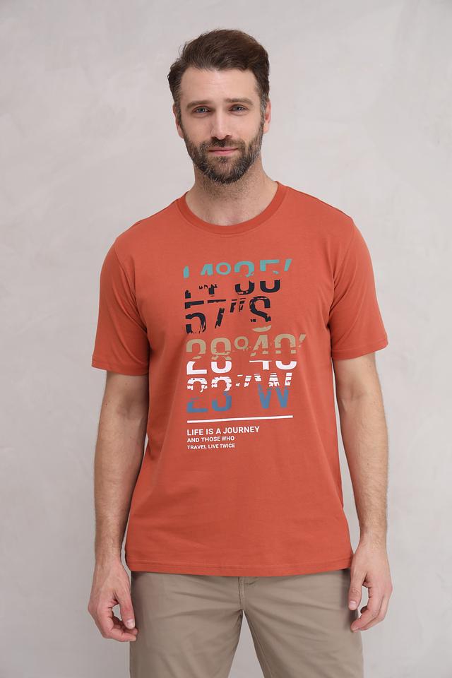 Мужская футболка Casa Moda терракотового цвета с ярким графичным принтом. Изготовлена из 100% хлопка, обеспечивающего комфорт и воздухопроницаемость. Стильный и удобный выбор для повседневного образа. Состав: хлопок 100%