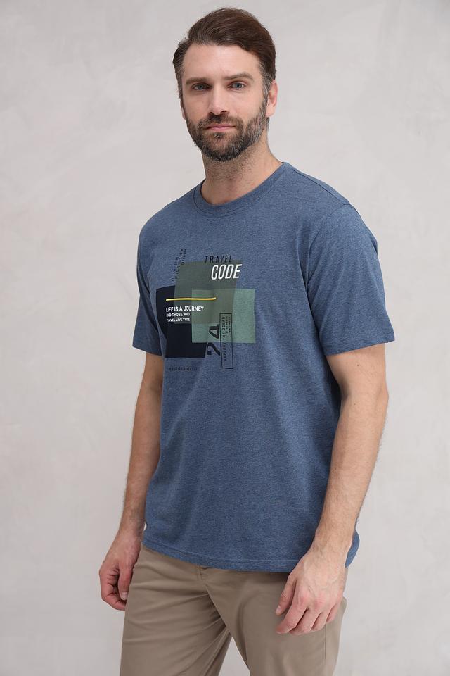 Мужская футболка Casa Moda синего цвета с ярким графичным принтом. Изготовлена из 100% хлопка, обеспечивающего комфорт и воздухопроницаемость. Отличный выбор для повседневного образа. Состав: хлопок 100%