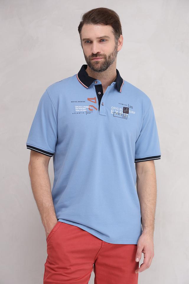 Голубое поло от Casa Moda – стильная и комфортная модель с оригинальным принтом. Изготовлено из хлопка с добавлением эластана для удобства носки и сохранения формы. Идеальный выбор для повседневного образа. Состав: хлопок 95%, эластан 5%