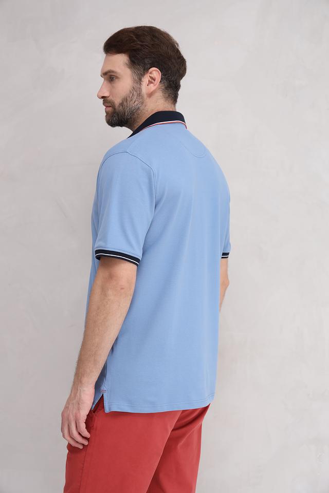 Это поло от Casa Moda выполнено в приятном голубом цвете и станет отличным дополнением к вашему гардеробу. Модель имеет классический крой, короткий рукав и воротник-поло с контрастной окантовкой.