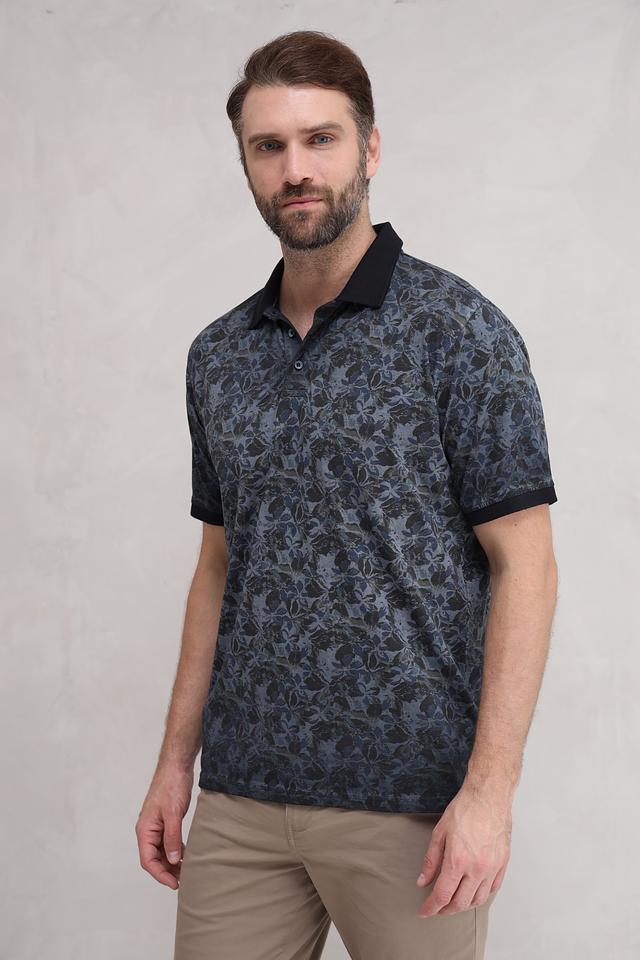Мужское поло Casa Moda серого цвета с оригинальным цветочным принтом. Изготовлено из 100% хлопка, обеспечивающего комфорт и воздухопроницаемость. Стильный и удобный выбор для повседневной носки. Состав: хлопок 100%