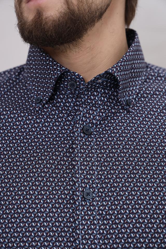 Мужская рубашка Casa Moda темно-синего цвета с мелким геометрическим принтом. Классический крой и длинные рукава делают эту рубашку универсальным элементом гардероба. Изготовлена из 100% хлопка, обеспечивающего комфорт в носке. Состав: хлопок 100%