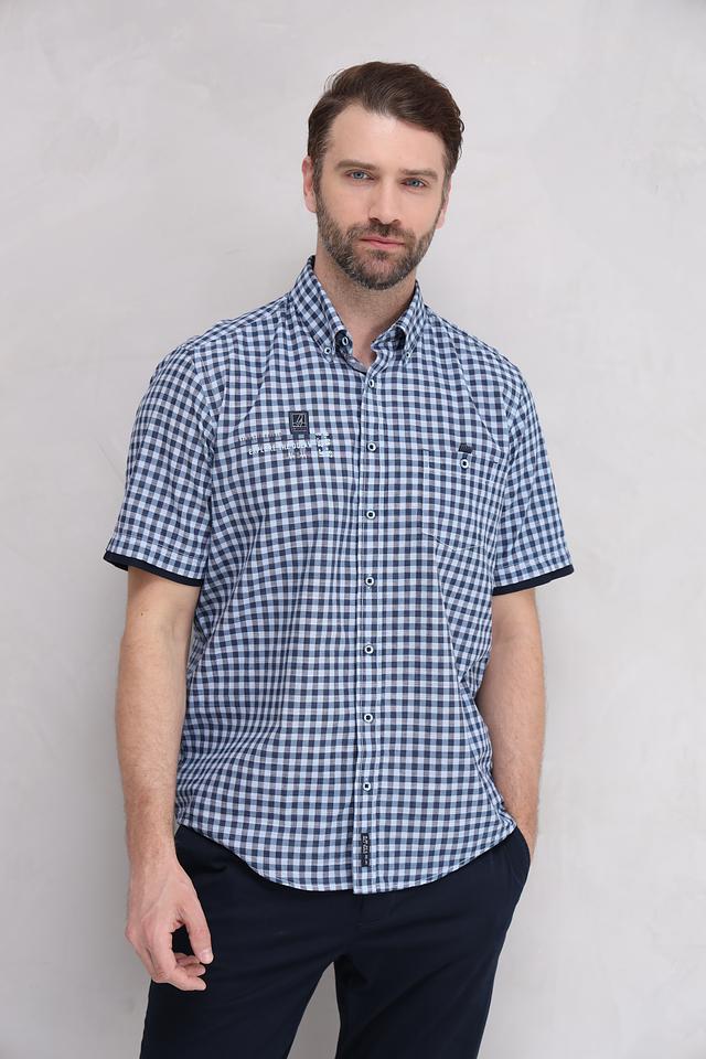 Мужская рубашка Casa Moda синего цвета в классическую клетку – отличный выбор для создания повседневного образа. Модель с коротким рукавом и удобным кроем выполнена из 100% хлопка, обеспечивающего комфорт в жаркую погоду. Состав: хлопок 100%