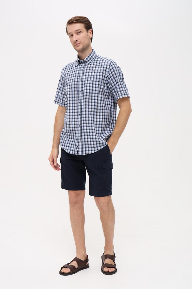 Мужская рубашка Casa Moda синего цвета с коротким рукавом выполнена в классической клетчатой расцветке. Изготовлена из натурального смесового материала, обеспечивающего комфорт и воздухопроницаемость. Состав: лен 55%, хлопок 45%