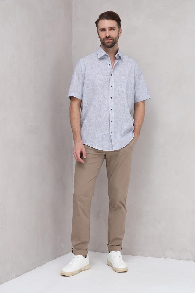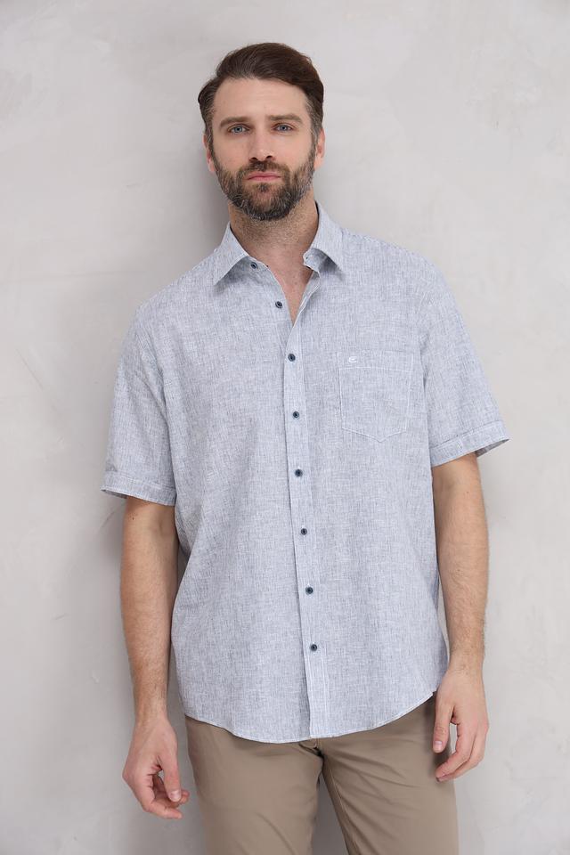 Мужская рубашка Casa Moda голубого цвета с коротким рукавом выполнена из натурального льна с хлопком. Лёгкая и дышащая модель идеально подойдёт для летнего гардероба. Состав: лен 55%, хлопок 45%