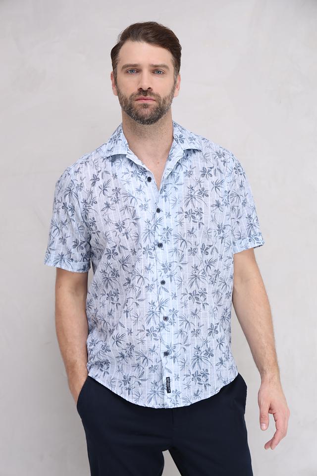 Мужская рубашка Casa Moda светло-голубого цвета с ярким цветочным принтом. Изготовлена из 100% хлопка, обеспечивающего комфорт и воздухопроницаемость. Отличный выбор для создания стильного летнего образа. Состав: хлопок 100%