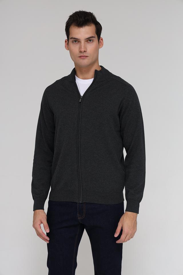Серый кардиган Casa Moda на молнии – удобная и практичная модель для создания повседневных образов. Изготовлен из 100% хлопка, обеспечивающего комфорт и воздухопроницаемость. Классический крой и нейтральный цвет делают этот кардиган универсальным элементом гардероба. Состав: хлопок 100%