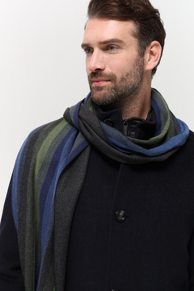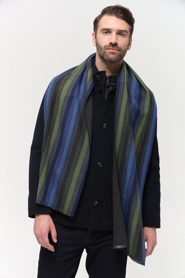 Мужской шарф Casa Moda сине-зелёного цвета с классическим полосатым рисунком. Изготовлен из мягкой вискозы, обеспечивающей комфорт и тепло в холодное время года. Шарф станет стильным дополнением к вашему образу. Состав: вискоза 100%