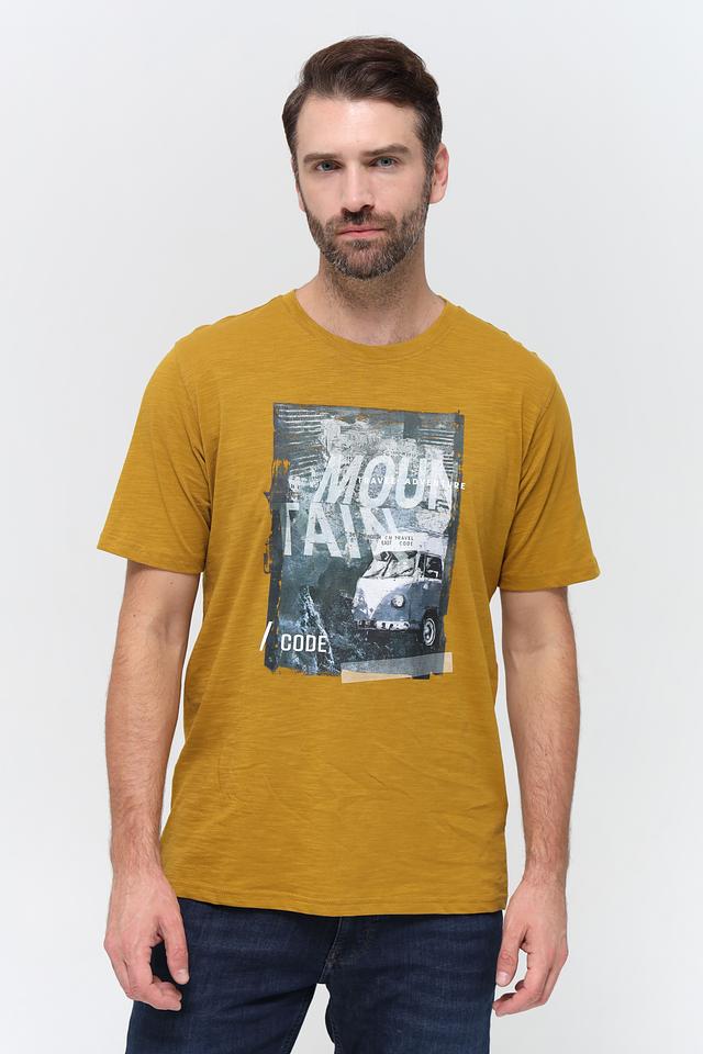Мужская футболка Casa Moda горчичного цвета с ярким принтом в стиле travel. Изготовлена из 100% хлопка, обеспечивающего комфорт и воздухопроницаемость. Отличный выбор для повседневного образа. Состав: хлопок 100%