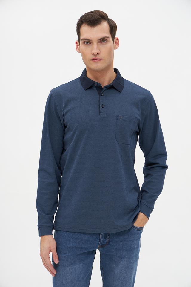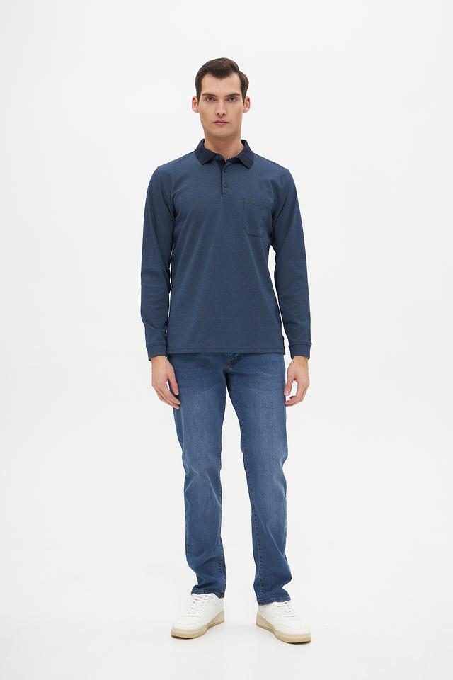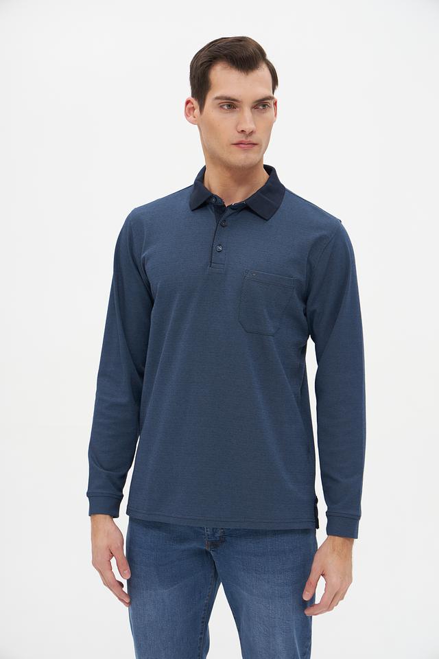 Мужское поло Casa Moda синего цвета с длинным рукавом и нагружным карманом – это удобная и стильная модель на каждый день. Изготовлено из хлопка с добавлением полиэстера для износостойкости и сохранения формы. Состав: хлопок 60%, полиэстер 40%