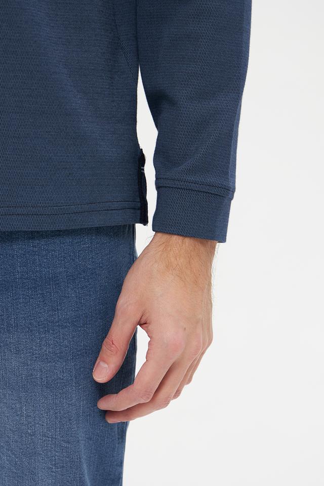 Это мужское поло от Casa Moda выполнено в насыщенном синем цвете и имеет длинный рукав, что делает его отличным выбором для прохладной погоды.
