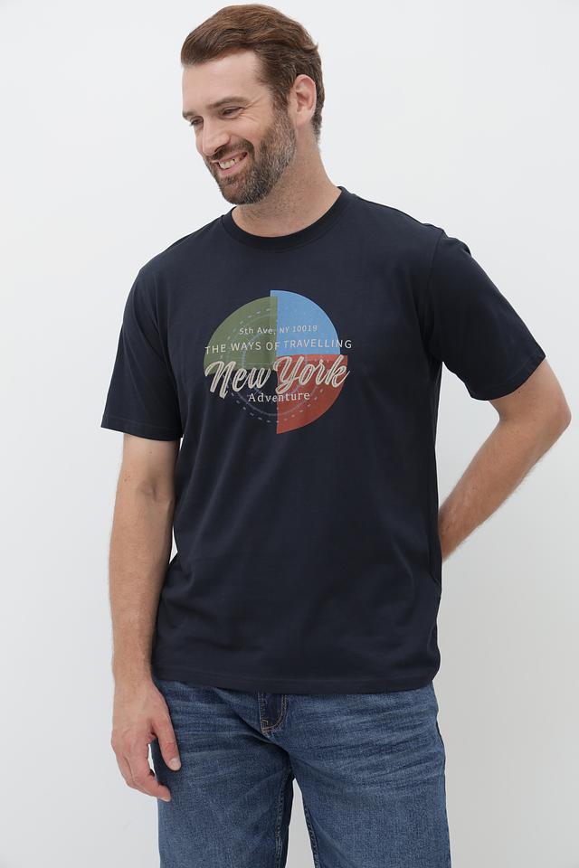 Мужская футболка Casa Moda тёмно-синего цвета с ярким принтом "New York". Изготовлена из 100% хлопка, обеспечивающего комфорт и воздухопроницаемость. Стильный дизайн и удобный крой делают эту футболку отличным выбором для повседневной носки. Состав: хлопок 100%