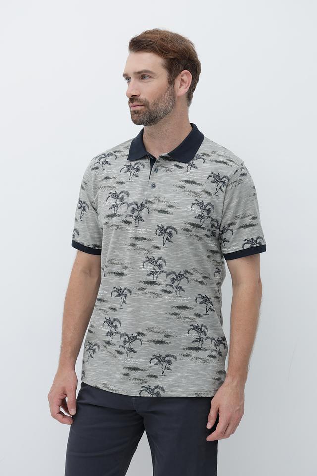 Поло Casa Moda с принтом пальм серый