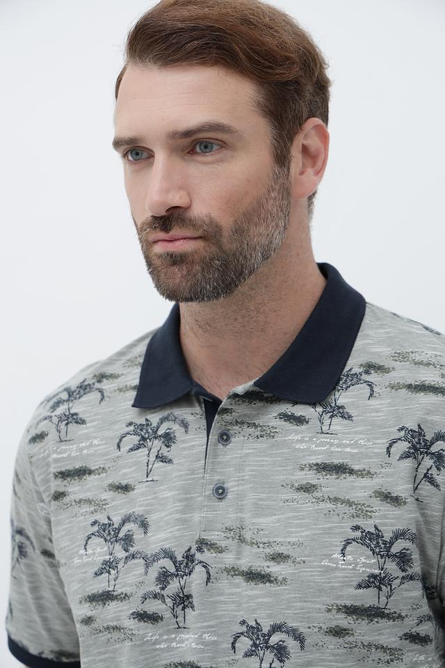 Серый мужской поло Casa Moda с оригинальным принтом пальм – стильное и комфортное решение для повседневного образа. Изготовлено из 100% хлопка, обеспечивающего приятные ощущения и воздухопроницаемость. Состав: хлопок 100%