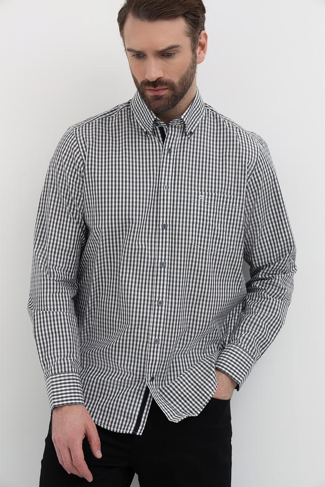Мужская рубашка Casa Moda чёрно-белого цвета с классическим кроем и длинным рукавом. Изготовлена из 100% хлопка, обеспечивающего комфорт и воздухопроницаемость. Идеальный выбор для создания стильного повседневного образа. Состав: хлопок 100%