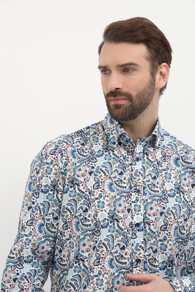 Мужская рубашка Casa Moda голубого цвета с оригинальным цветочным узором. Изготовлена из 100% хлопка, обеспечивающего комфорт и воздухопроницаемость. Состав: хлопок 100%